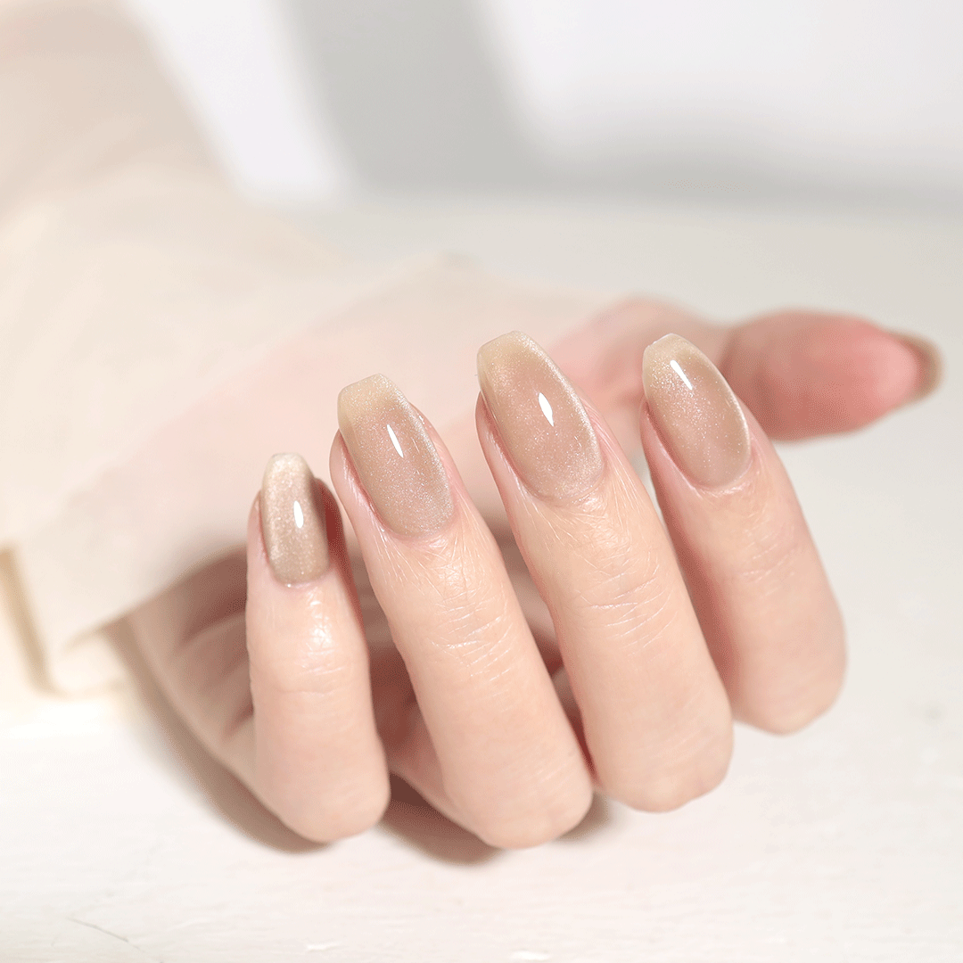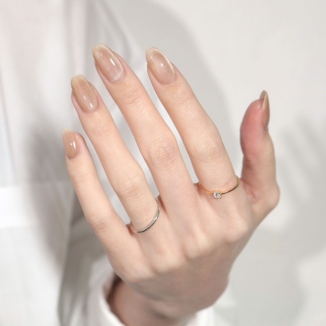 やわらかな光を宿す、シャンパンベージュ。繊細なきらめきが、静かに惹きつける指先を演出します。
