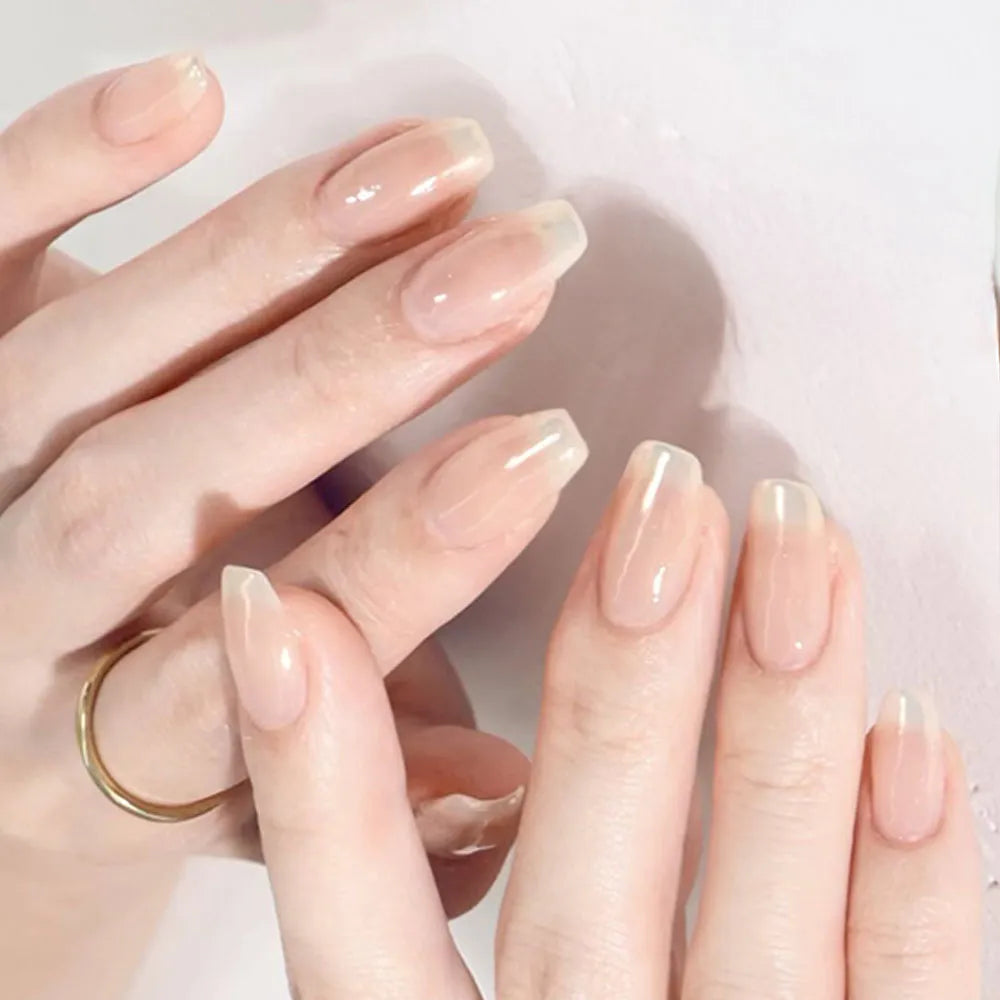 ②オーロラパウダー(champagne pearl)を爪の先端に多めに乗せ、粉のついてない指やチップで下にぼかしていきます。