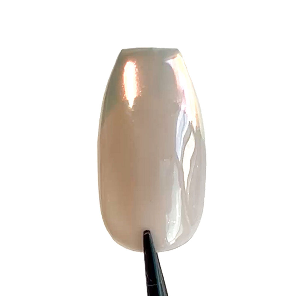 ①mimiを塗り硬化した後に、オーロラパウダー(champagne pearl)を指またはチップで全体に擦ります。