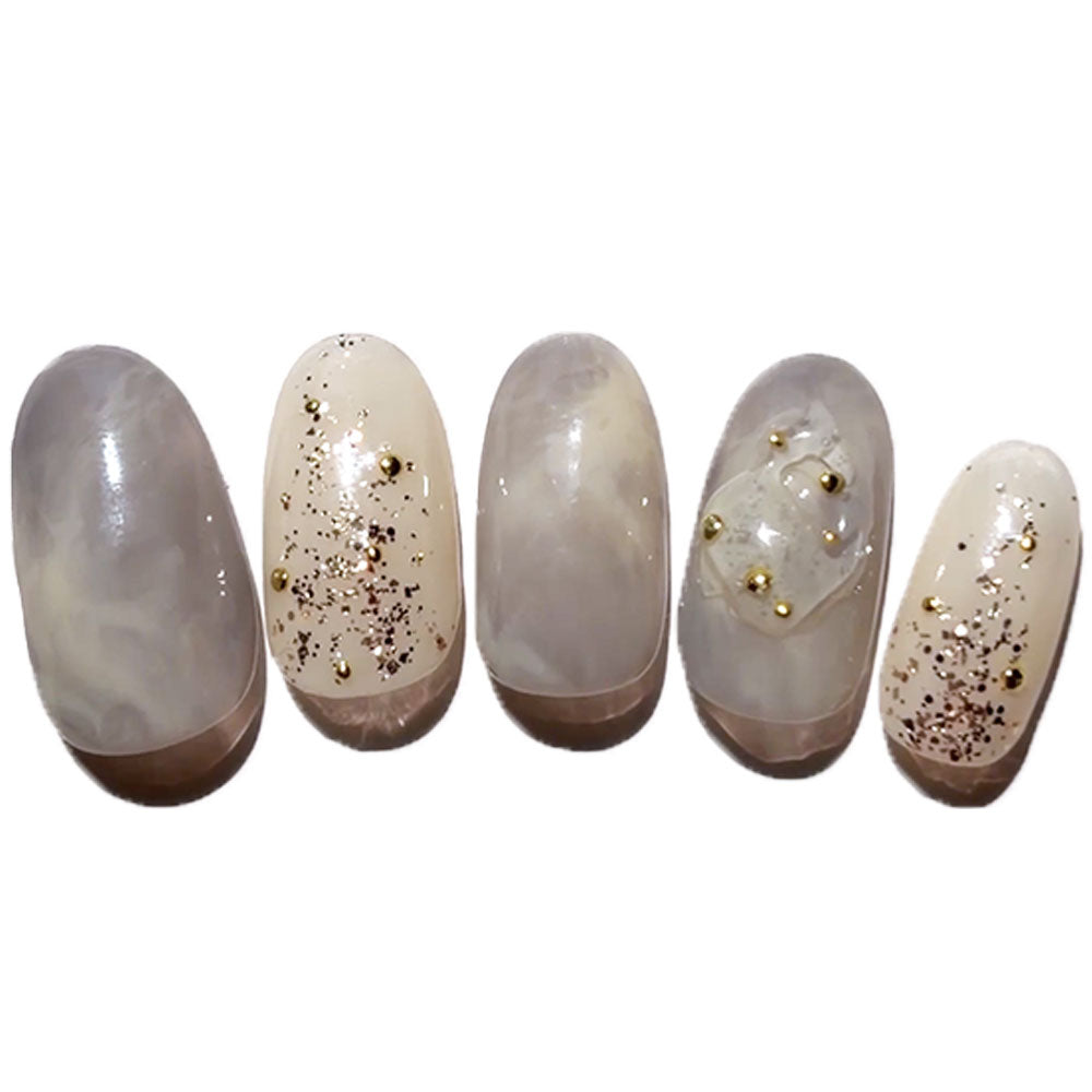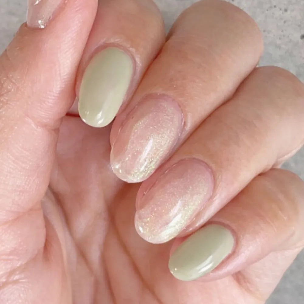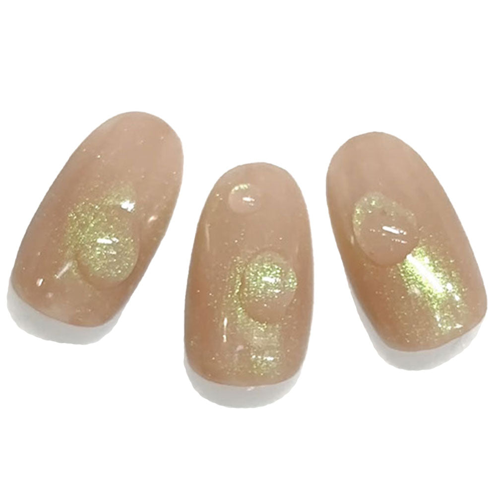 ③オーロラパウダー champagne pearlをランダムにのせ、上からトップジェルを塗り、硬化します。