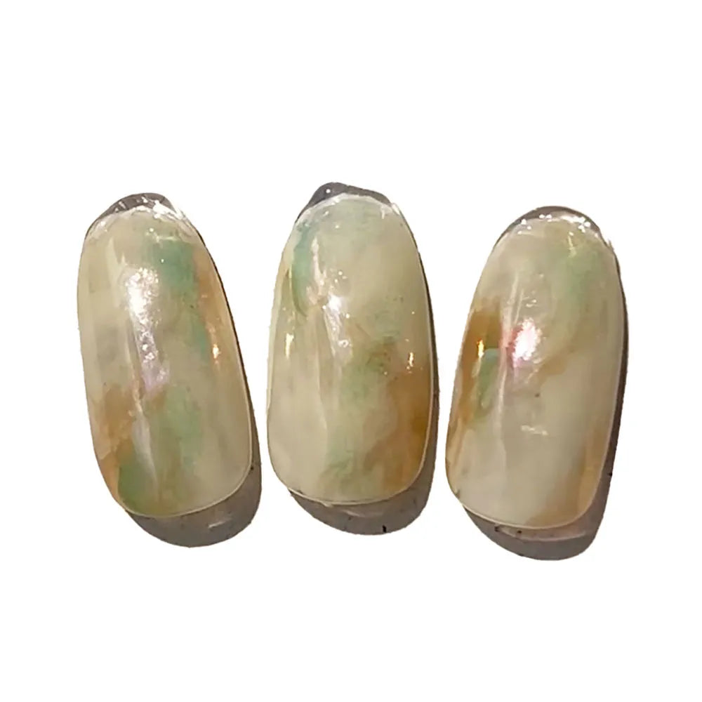 ②上に、green pearl を塗り硬化し、上から全体にビルダージェルを薄く重ね硬化します。